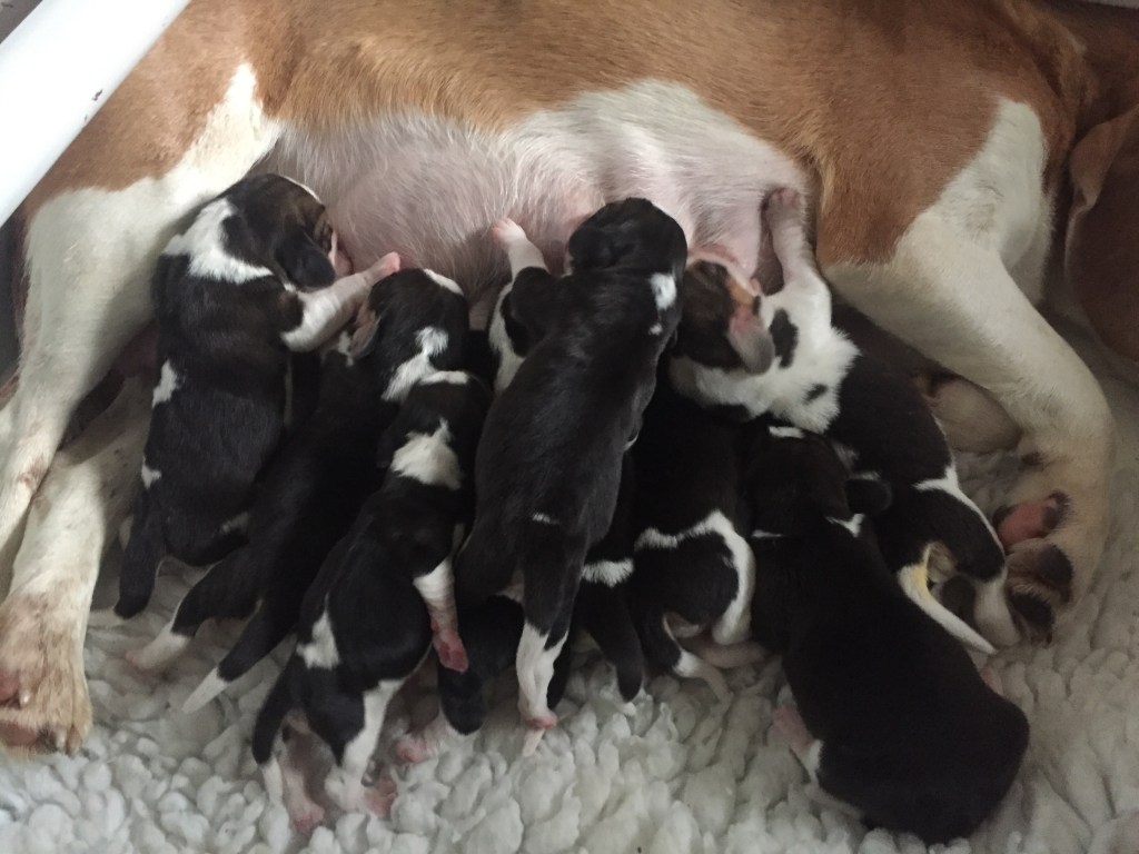 We are pleased to announce Frannie and Denzal welcomed 9 lovely tri coloured babies (7 girls and 2 boys) into the world on the 8th of January. These puppies will be hereditary clear of MLS,NCCD, IGS, LAFORA and FACTOR 7.
