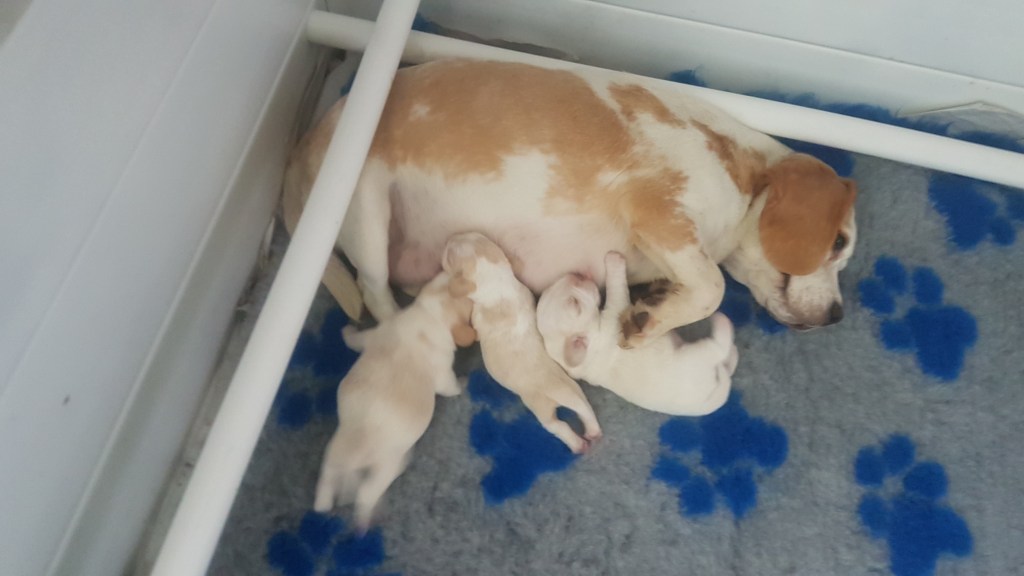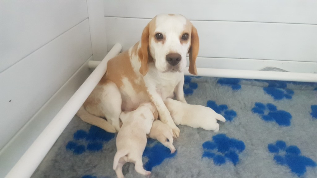 Elvis and Honey became the proud parents of 3 tan and white puppies born on the 25th June 2020. The are 2 boys and 1 girl. We will be retaining the girl and both boys are sold. The puppies will be clear or won’t be affected by MLS, NCCD,IGS,FACTOR 7 and LAFORA.