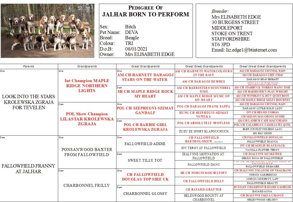 Diva is hereditary clear of MLS, NCDD, IGS, LAFORA and FACTOR 7.
