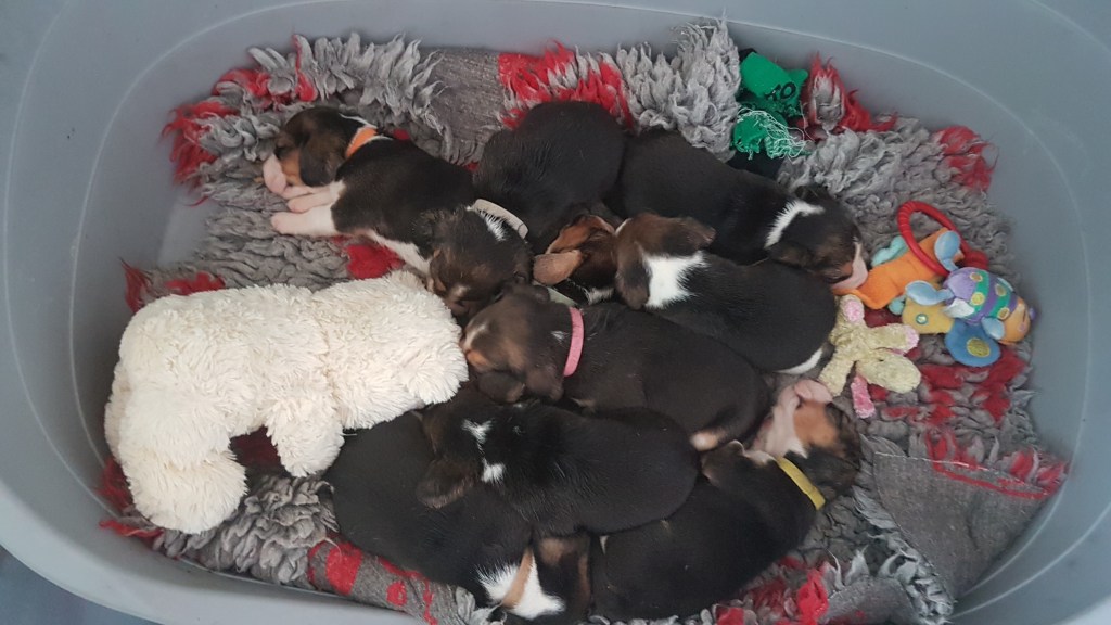 Molly and Reg welcomed 9 lovely babies (6 girls and 3 boys) throughout the night on the 1st October 2019. These puppies will be clear of MLS, NCCD, IGS and will not be affected by LAFORA.