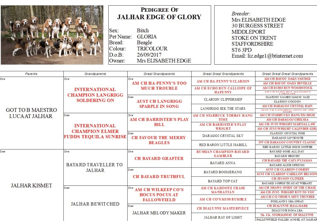 •Edges Jalhar Edge Of Glory. Litter sister to BP. Upto size for a bitch, and strong throughout. Pleasing through head, good angles and moved ok.